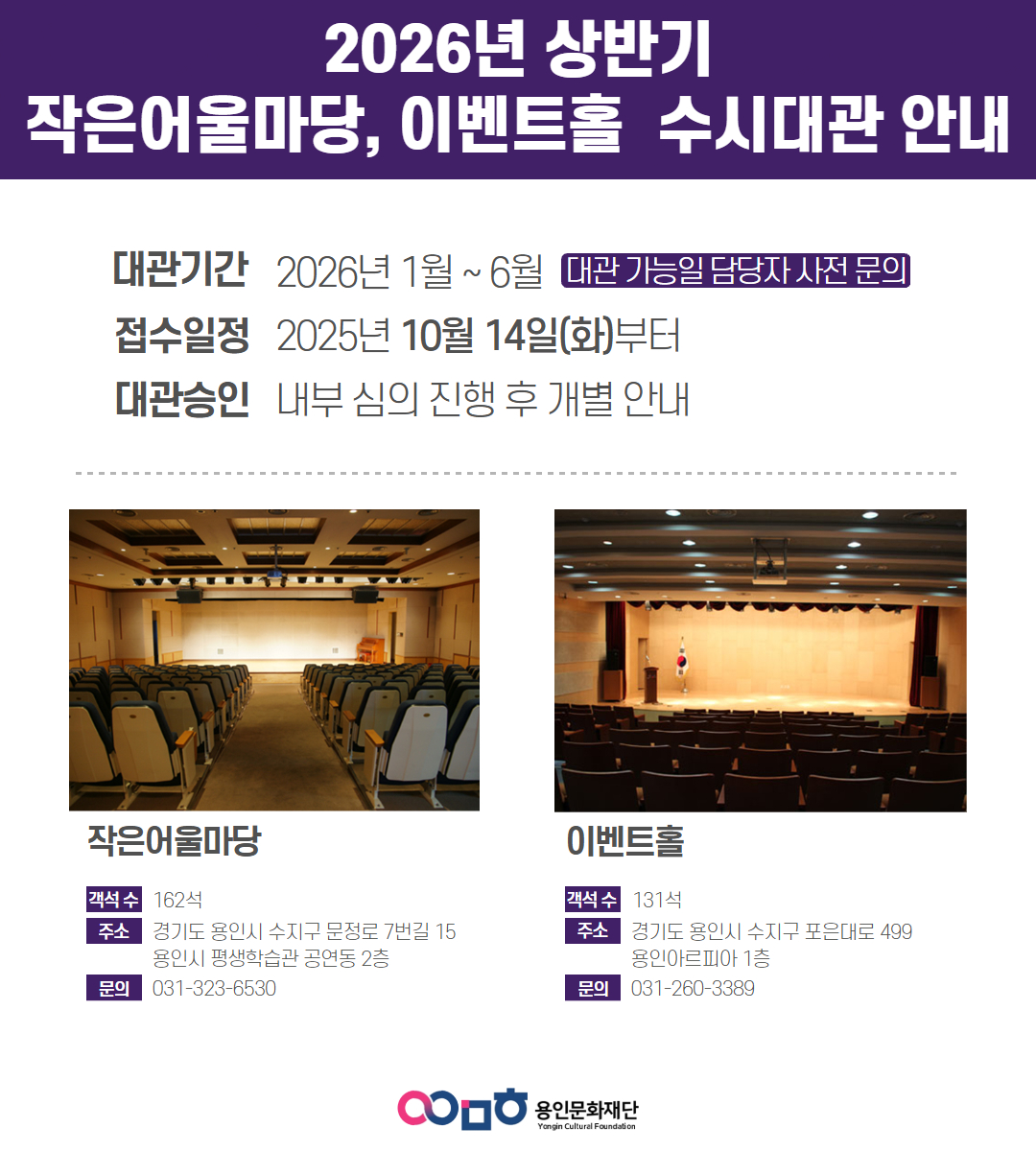 [기타]2026년 상반기 용인문화재단 작은어울마당, 이벤트홀 수시대관 안내