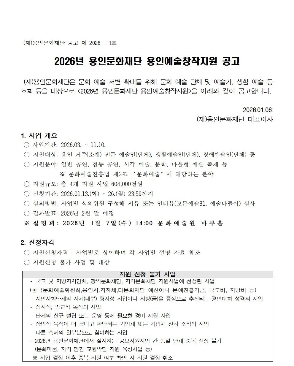 2026 용인문화재단 처인구 기획공연 라인업