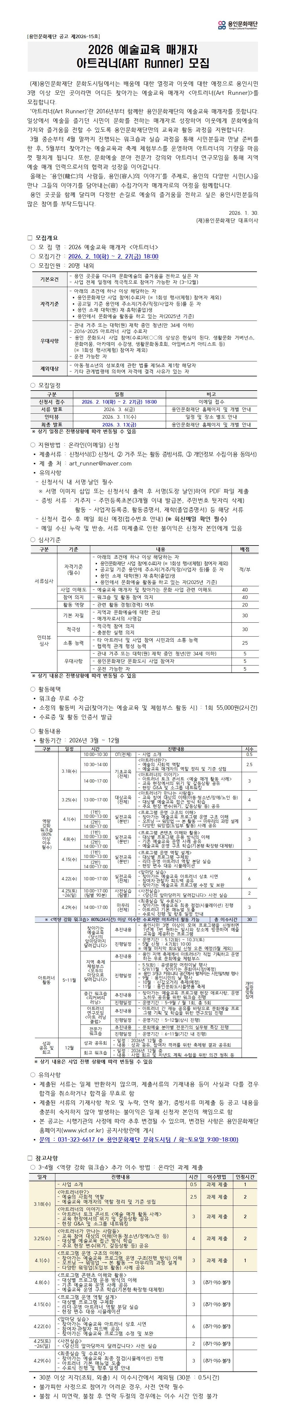 <용인문화재단 공고 제2026-16호> 2026 아임버스커(I’m Busker) 운영 대행사 우선협상 대상자 공고